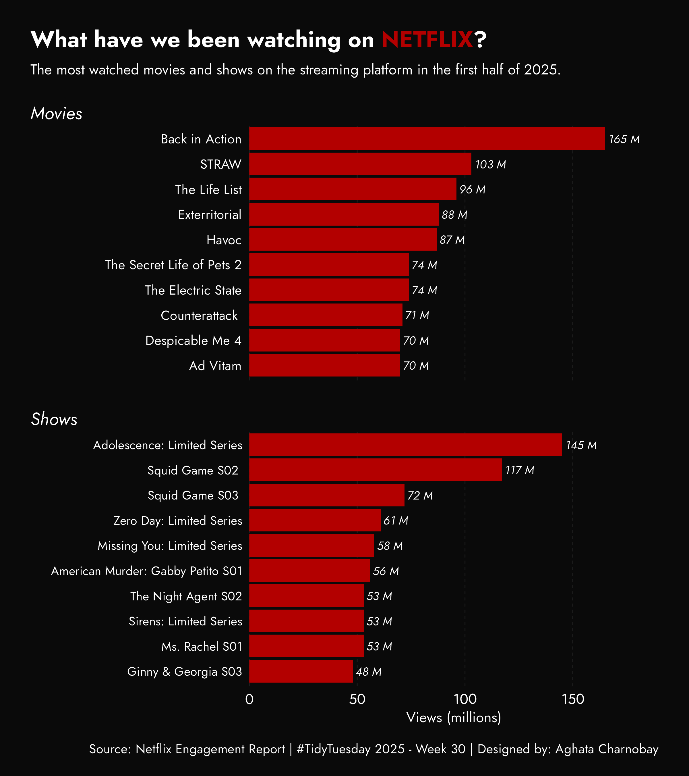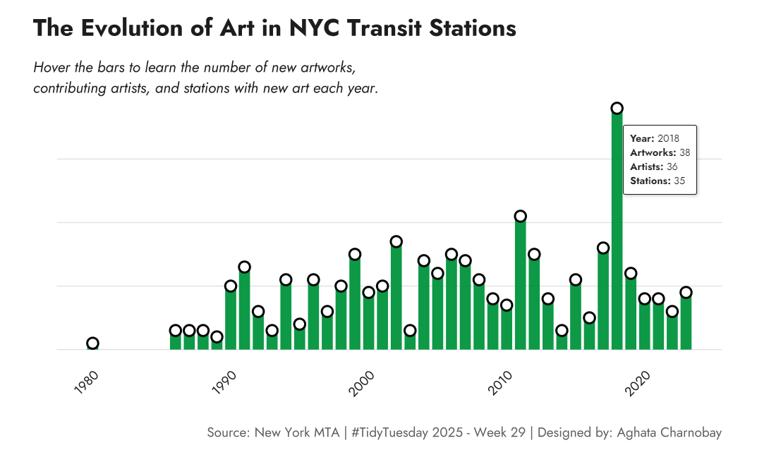 Below, you’ll find a selection of my TidyTuesday contributions. All visualizations and the code used to generate them are available on GitHub.